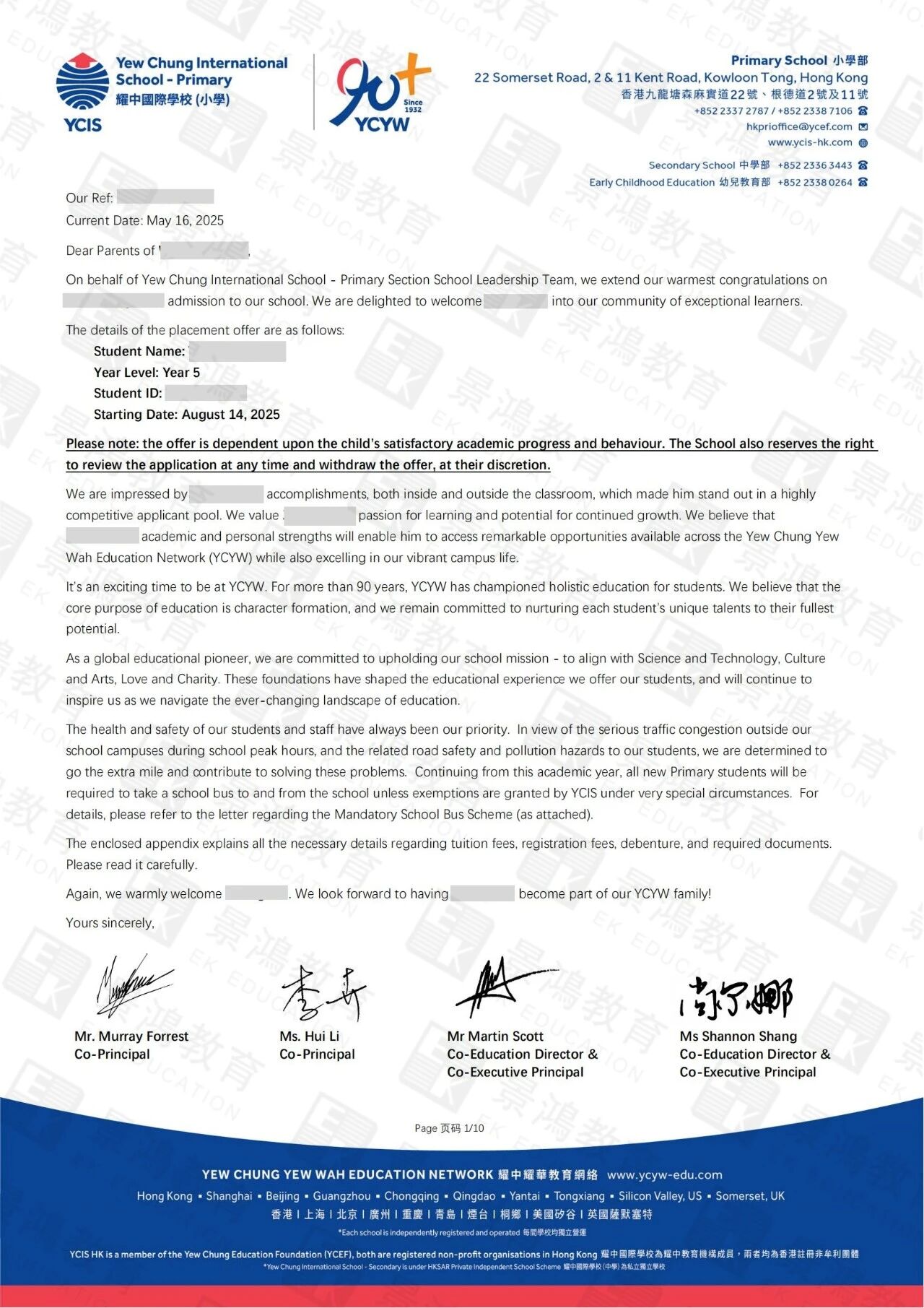 批量OFFER来袭!想到香港中小学插班?快来咨询景鸿教育