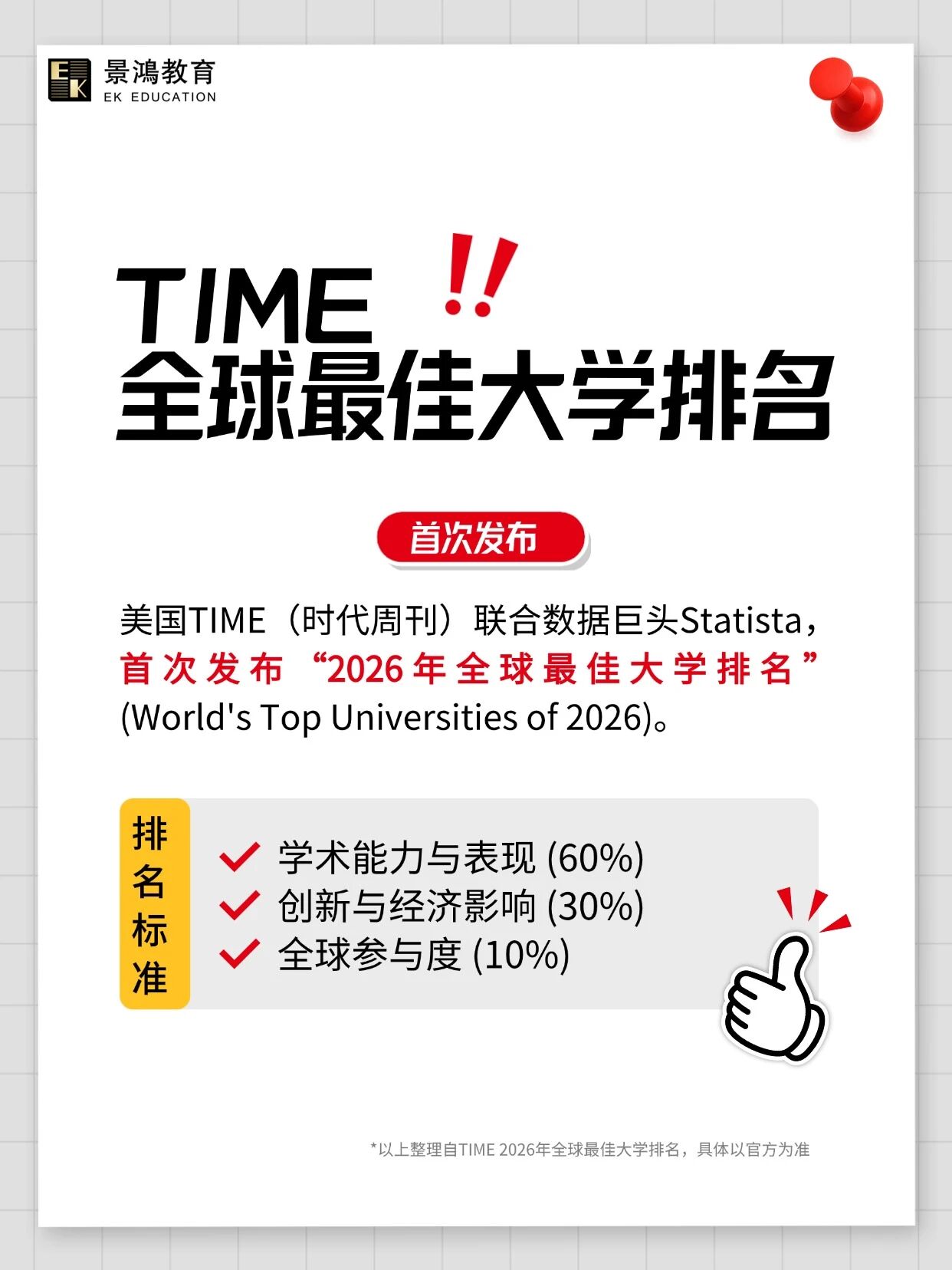 最近,美国TIME(时代周刊)联合数据巨头Statista,首次发布了“2026年全球最佳大学排名” (World's Top Universities of 2026)。