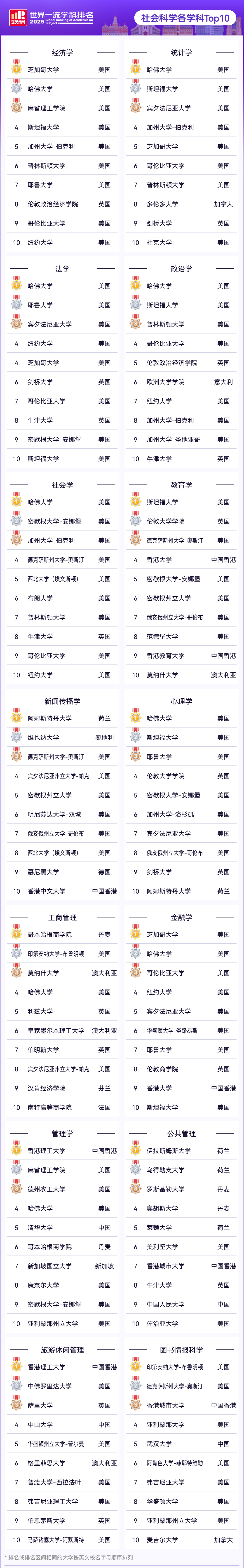 内容提要:11月18日,2025软科世界一流学科排名(ShanghaiRanking's Global Ranking of Academic Subjects)正式发布!
