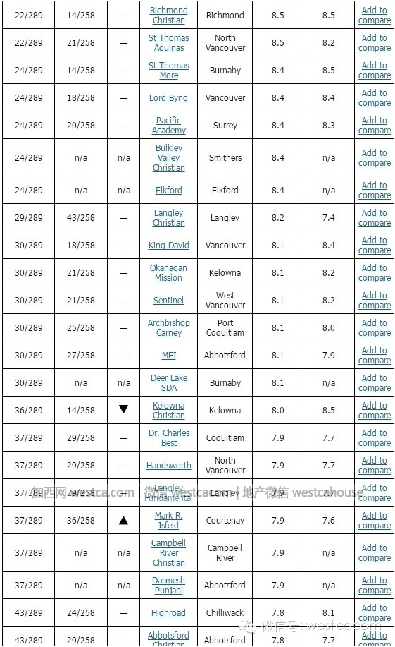 其他前十名的温哥华学校包括Crofton House、WestPoint Grey、St George's、StJohn's;