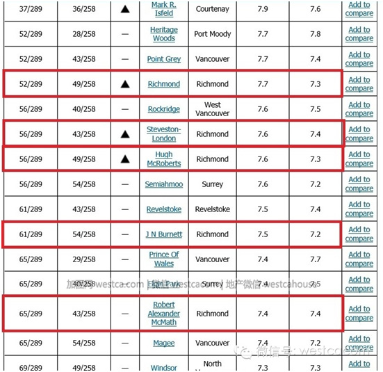 报告显示,与过去五年相比,部分学校有显着进步,包括温哥华的Notre Dame和本拿比的Burnaby Central中学,前者评分从7.0提高到7.5,排名上升6位,从67提升到61,Burnaby Central的评分也从原来的6.2上升6.7,排名从112位攀升到第96。