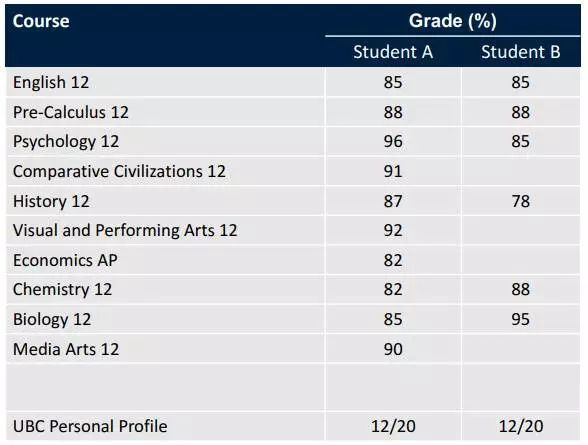 下面,请跟随EK留学君当一次UBC招生官,体验一次筛选学生的快感: