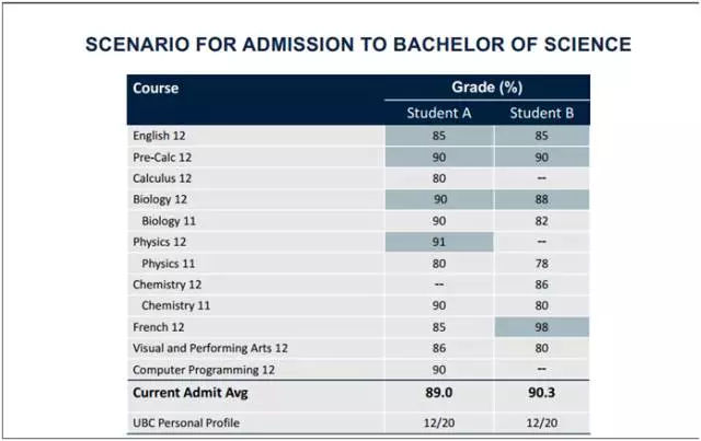 3、UBC将参考你所有的11及12年级课程,即使个别课程不算入总平均分,但也将作为关联度参考;