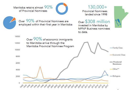 超过90%的省提名人是通过曼省省提名项目移居曼省。