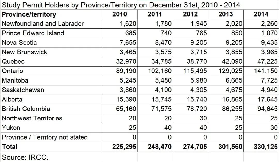 在此期间,其他留学生人数至少翻了一番的省份包括纽芬兰省、拉布拉多省、魁北克省、安大略省和曼尼托巴省。