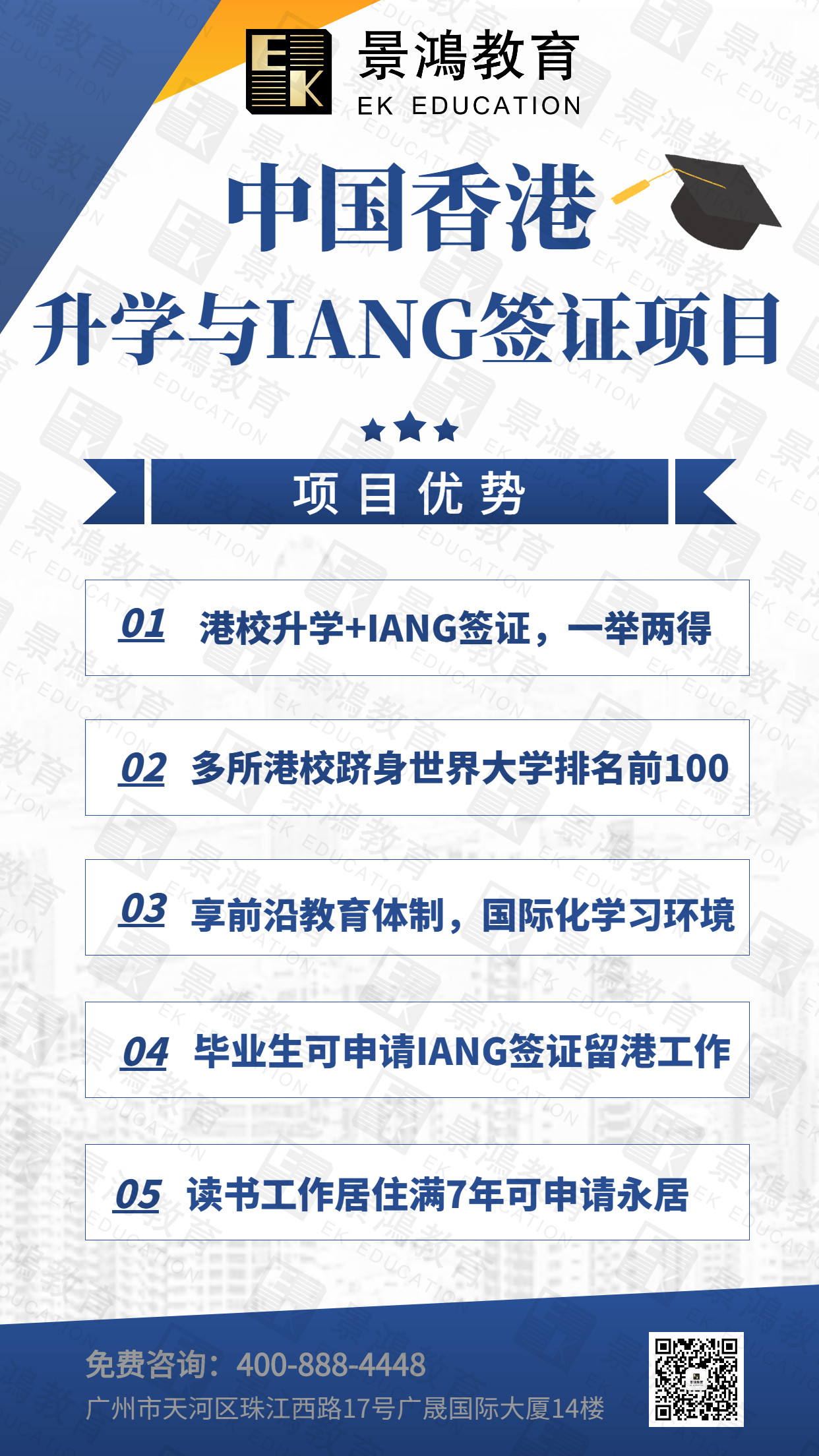 景鸿教育中国香港升学与IANG签证项目,可以帮助你在获得名校学历的同时,一步到位办理IANG签证,毕业留港工作,更有机会拿身份!