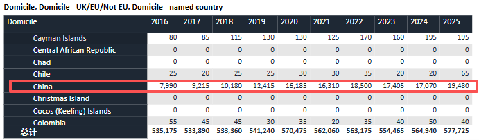 2025年入学季,国际学生共有154,145人。作为英国留学最大海外生源地,中国大陆学生的表现尤为突出:申请人数从去年的33,425人增至36,385人,录取人数同步从17,070人提升至19,480人,涨幅达12.4%,达到近10年高点。
