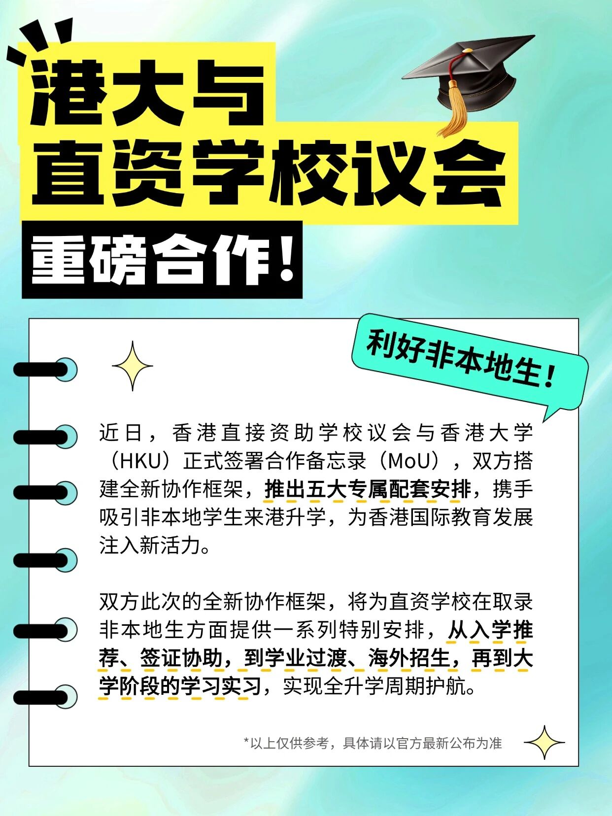 港大与直资学校议会合作!利好非本地生!