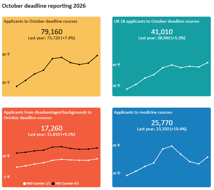 另外需要注意的是,牛津大学、剑桥大学以及医学、牙科、兽医学等专业的申请已经在10月15日截止。同时,大多数本科课程申请将会在英国时间2026年1月14日18:00截止,请同学们注意时间!