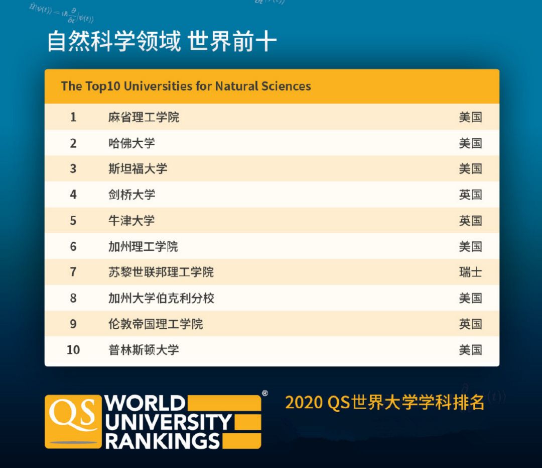具体包含7个专业科目:化学、地球和海洋科学、环境研究、地理学、材料科学、数学、物理学&天文学,每个科目都有单独的科目排名。