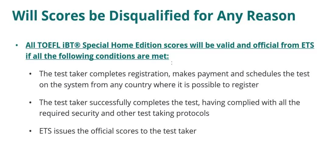 不可靠!只要拿到成绩,就是有效的,TOEFL iBT® Special Home Edition仍然是托福 iBT考试,出题和评分各个流程没有发生任何变化,只是更改了考场的物理环境,由固定公开的考场转换为家里。不存在学校不接受的情况。所有接受托福考试成绩的学校都接收家庭版考试的成绩单。