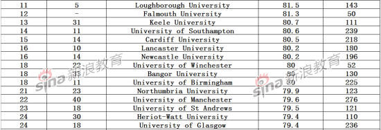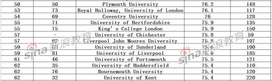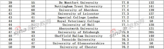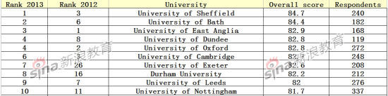 同时,在2014年的排名中跻身前10名的大学院校也包括从去年的26名上升至今年第7名的埃克塞特大学、杜伦大学(从16名上升至第8名)和诺丁汉大学(从11名上升至第10名)。