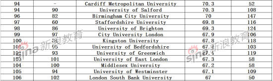 除此之外,其他的一些新兴大学在今年的排名中,多半也呈现上升的趋势。如排在第21位的诺森堡大学,同时它也是整个大学联盟机构中排名最靠前的大学。类似的,林肯大学和德蒙特福特大学分别位于排行榜中的29名和39名。
