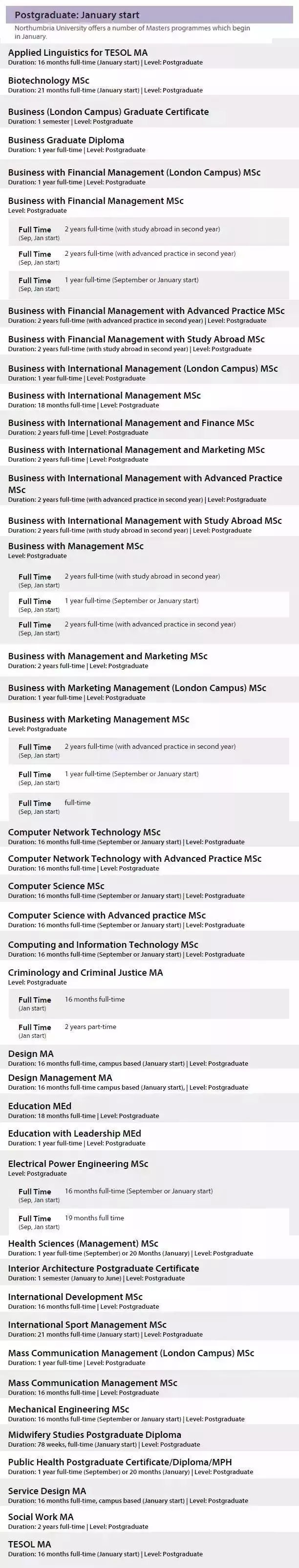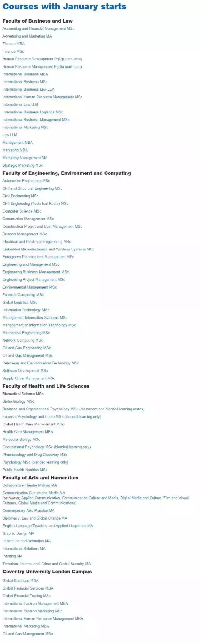 一月份课程开设的比较多,伦敦校区的大部分专业都比较热门。