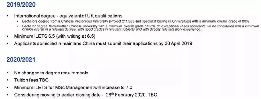 2019年管理学院的申请截止日期是4月30日。2020年管理学院的专业雅思提高到7分,且申请截止日期有可能提前到2020年2月28日。所以要申的同学要抓紧啦!