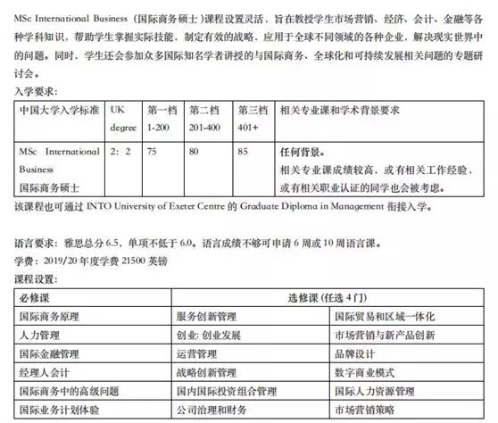 该校商学院新开设MSc International Business(国际商务硕士), 2019年9月开课。入学要求、课程设置等详情请参见下图。