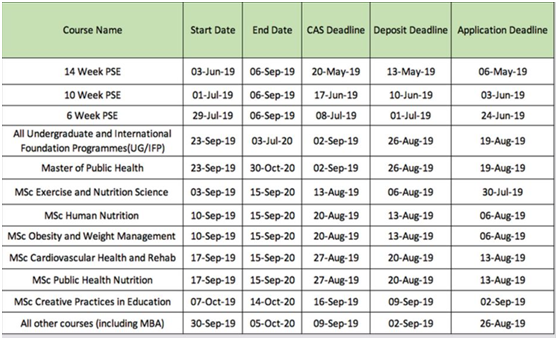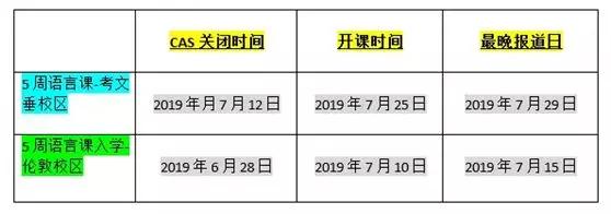 注意该校2019最新课程的时间安排信息,以下是提交申请、申请CAS等相应截止日期: