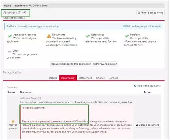 爱丁堡大学MFA Jewellery专业有可能要求学生重新提供约500字的PS。