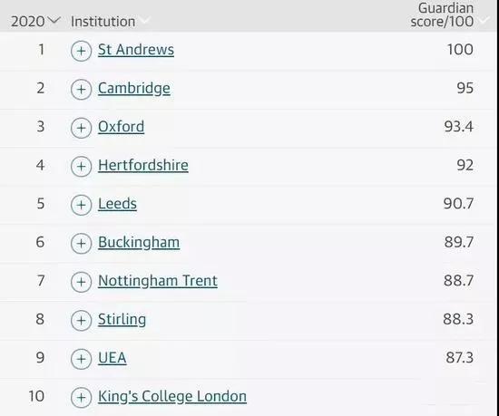 近日,英国《卫报》发布了2020年的最新英国大学排名榜单,排名主要参考以下九大指标,并由英国大学生满意度调查(NSS)来打分,然后按照总分排名。