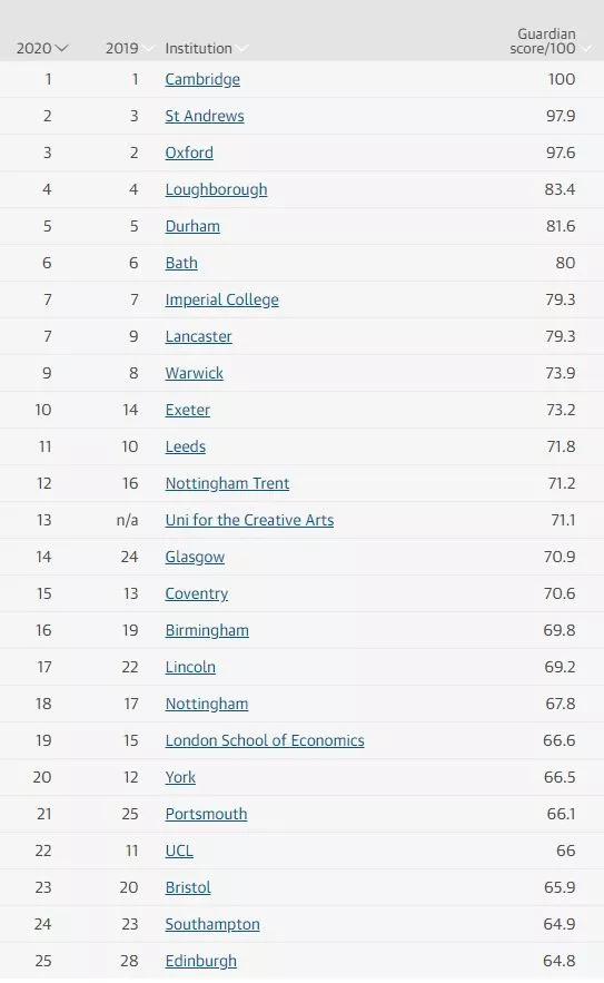 作为英国大学三大权威榜单之一,卫报的排名标准更加专注于学生的意见和感受。此次最新的排名可谓是看点满满!