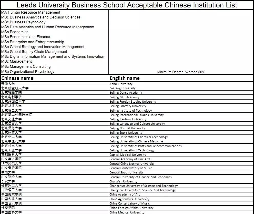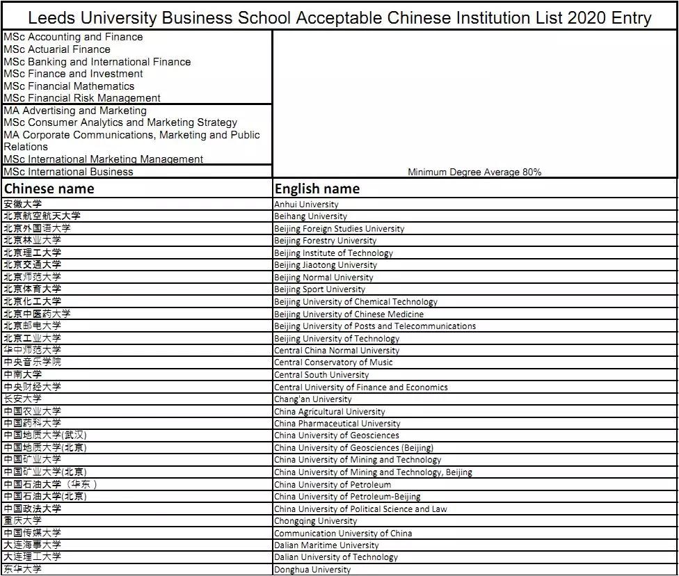 从2016年开始,利兹大学就不再参考网大排名,而是制定了自己认可的院校名单。近日,利兹大学官网更新了商学院2020年申请认可的中国院校名单。具体名单如下: