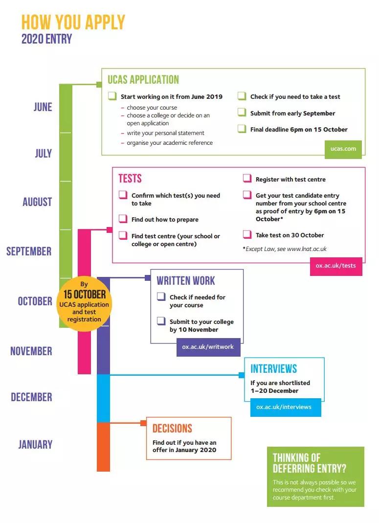 牛津2020本科申请流程图包含了以下几个关键时间节点:
