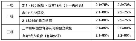 中国大陆学生对应平均分要求