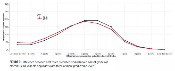 · 43.2%的被录取学生,没有达到A level预估成绩且分差在3分以上,比去年上涨了37.9%。