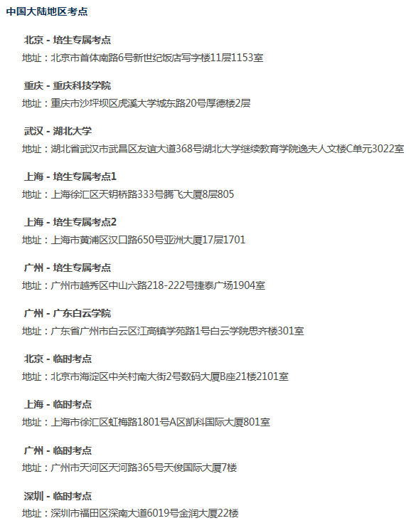 内容提要:从即日起,包括中国在内的首批20个考点开始接受报名预订,其中国内11个考点即日开放考试,包括北京/上海/广州(培生专属考点),新增4个临时考点,分别为北京/上海/广州/深圳。而