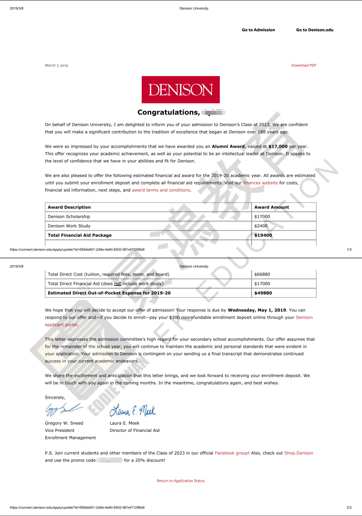 丹尼森大学于1831年建校,是俄亥俄第二古老的高等学府,也是美国顶尖文理院校之一,与肯尼恩学院,欧柏林学院等同为俄亥俄五校联盟。