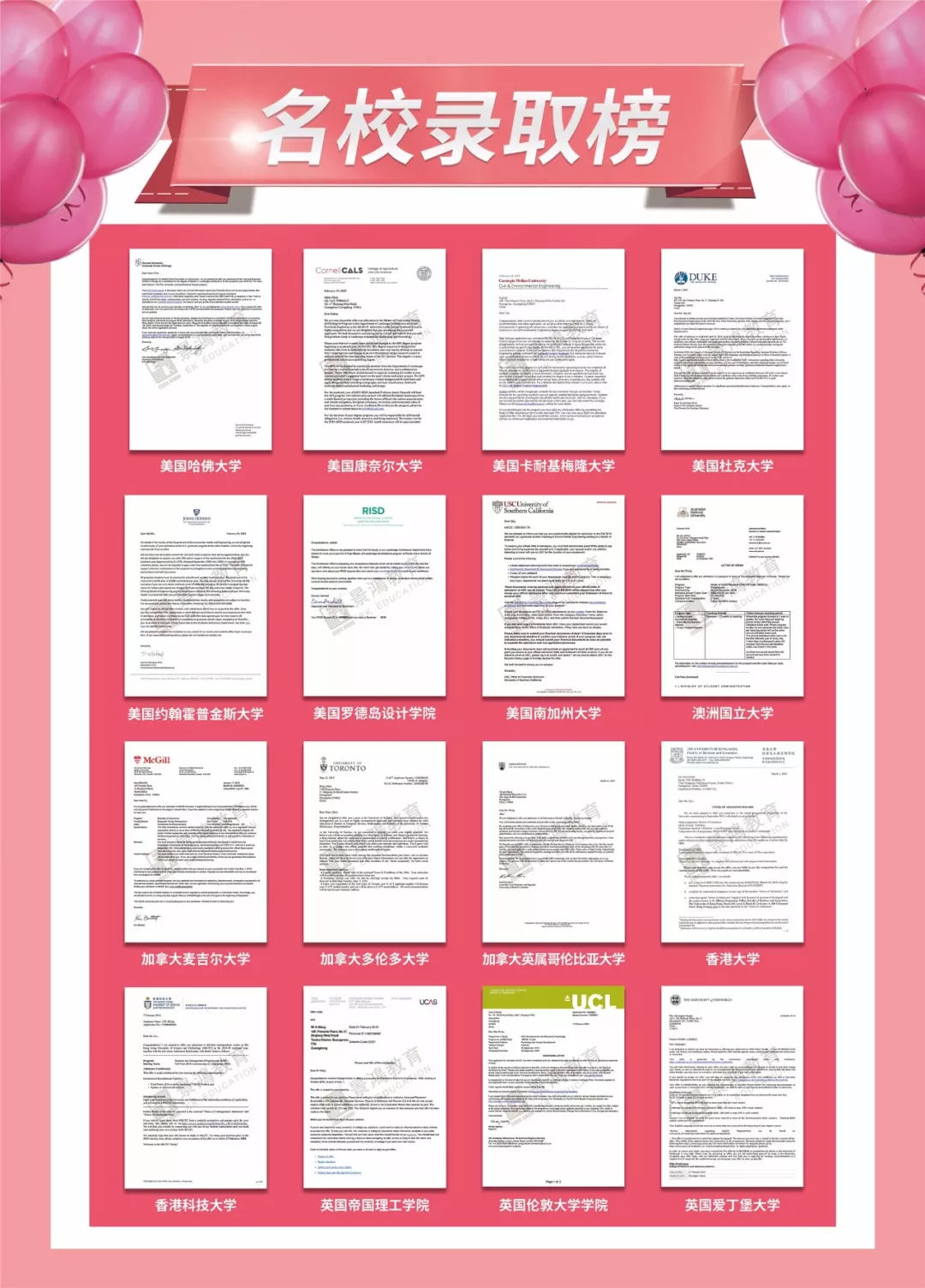 多年来,景鸿教育以诚信为本的信誉、全面一体化的服务网络、资深的明星团队,为广大学生精挑世界顶尖教育资源,提供全阶段一站式量身定制的导师级留学服务。曾帮助学生获得哈佛大学、卡耐基梅隆大学、纽约大学、麦吉尔大学、多伦多大学、墨尔本大学、悉尼大学、香港大学等名校的录取,备受家长及学生信赖。