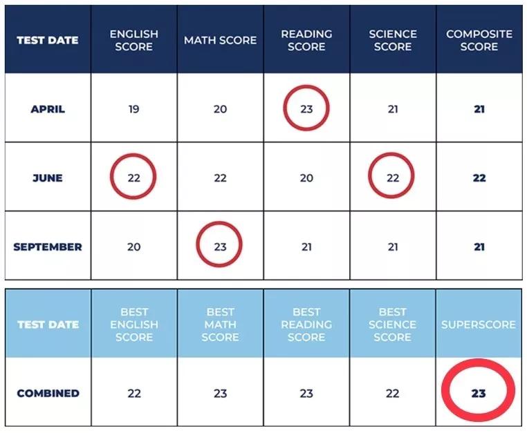 简单来说,就是将不同场次考试的单项最高分拼在一起,算出得新的平均数,就是拼分后的ACT分数。当前,如果多次参加考试的学生希望大学看到他们最好的成绩,他们必须发送多个考试成绩。