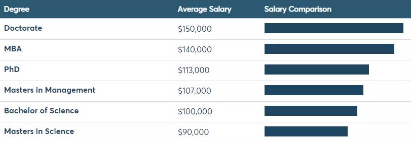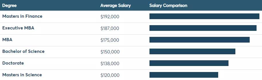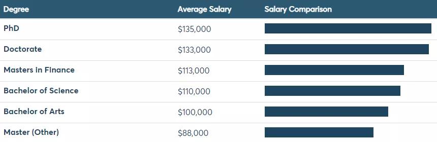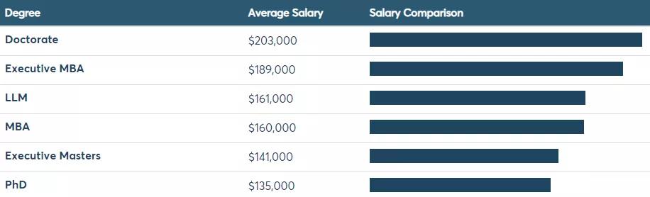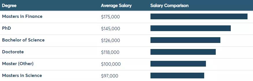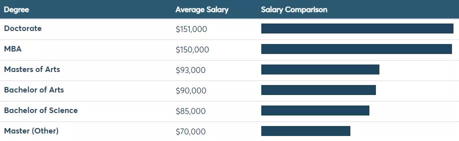 杜克大学的最高薪学位是博士学位,校友的平均薪资为15万美元。其中,薪水最低的毕业生是那些拥有其他硕士学位的人,平均年薪约为85,000美元。