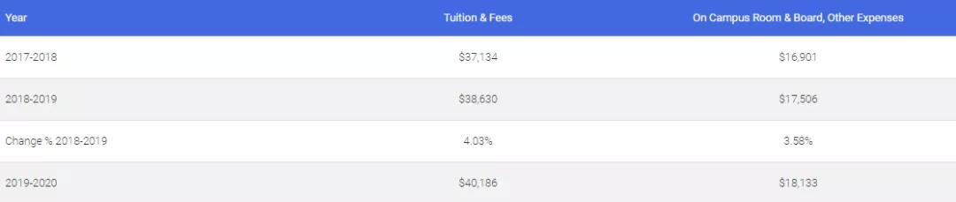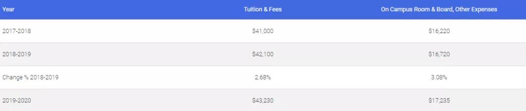 2019-2020研究生平均成本:学费约43,230美元、其他费用约17,235美元