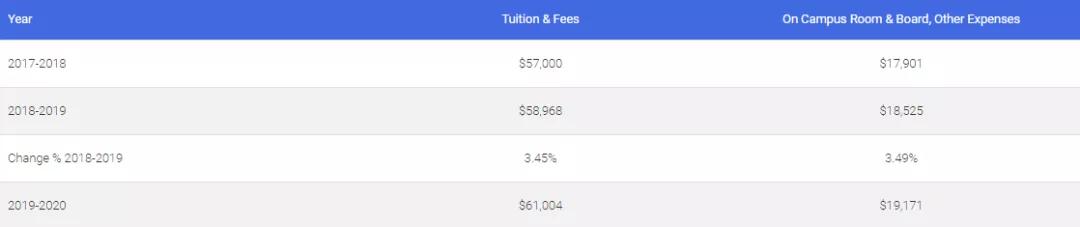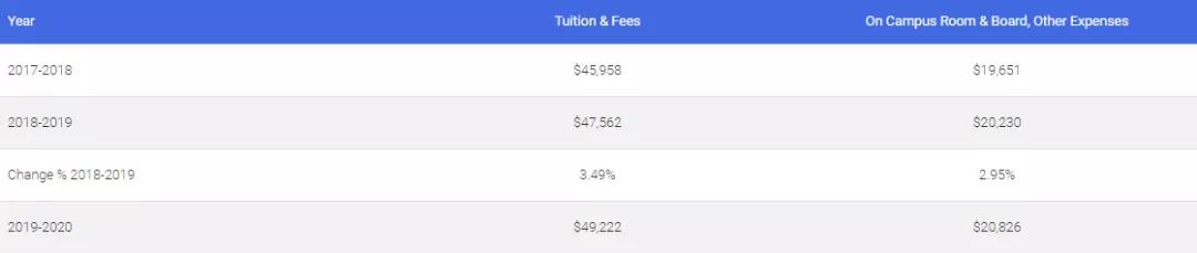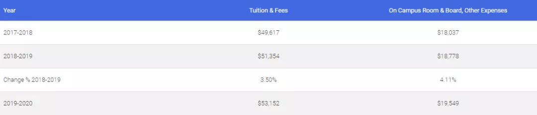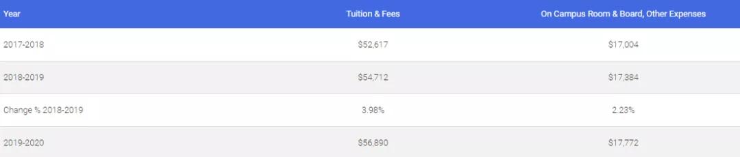 2019-2020研究生平均成本:学费约53,669美元、其他费用约21,253美元