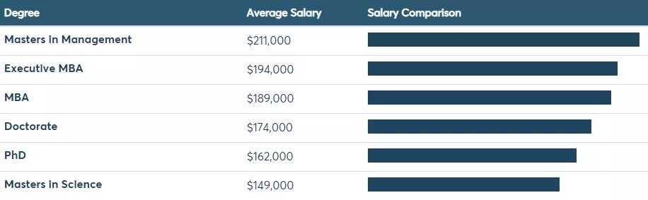 麻省理工学院收入最高的学位是管理学硕士,校友的平均薪资为211,000美元。其中,年薪最低的是其他硕士学位,平均年薪为11万美元。