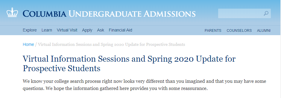 近日,哥伦比亚大学官网亦宣布了对于标化考试、课外活动、访校等方面的政策变化。主要包括: