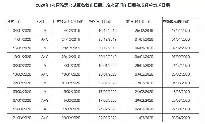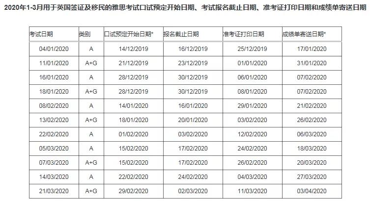 2020年第一季度(1月到3月)雅思考试、用于英国签证及移民的雅思考试日期现已正式发布,从18日起开始接受公开报名。