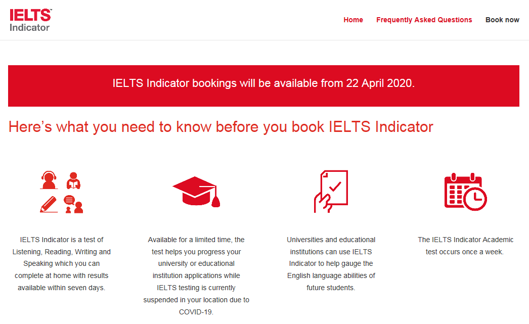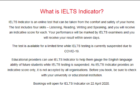 IELTS Indicator考试可以从2020年4月22日起接受预约,预订网址为: